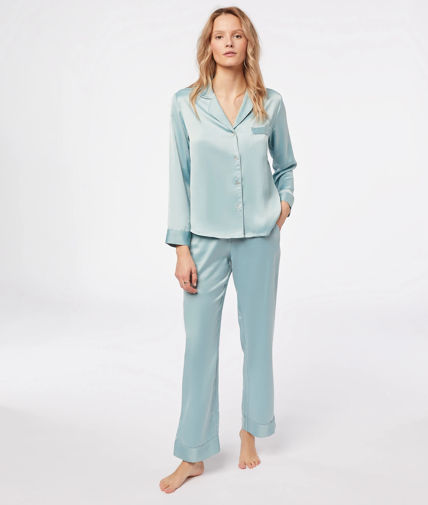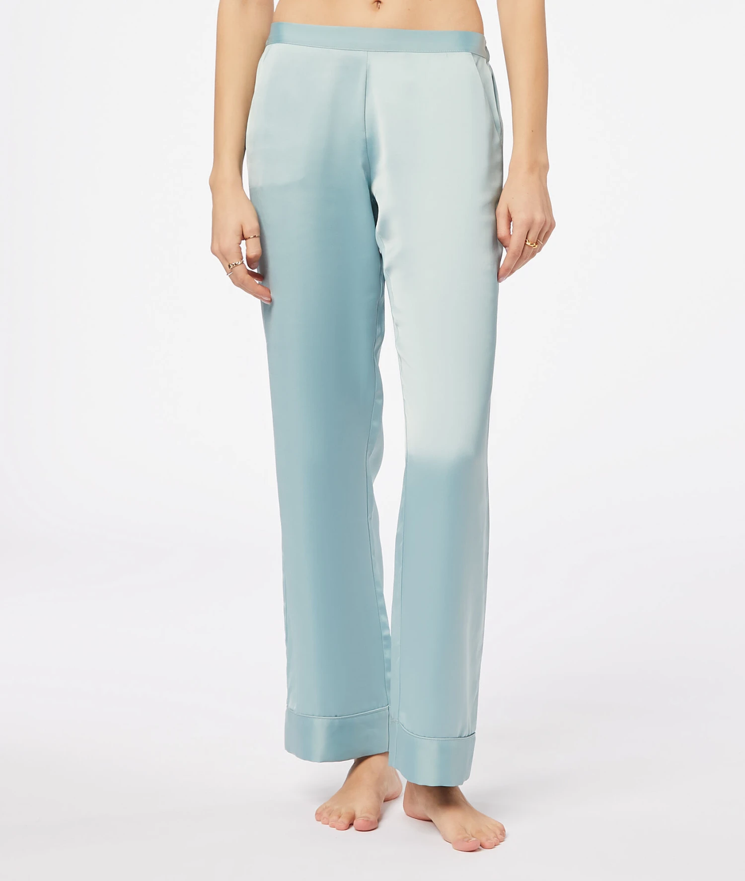 Erleben Sie den Inbegriff von Eleganz und Komfort mit der Catwalk Pyjamahose aus der exklusiven „Blaue Lagune“ Kollektion. Diese Hose vereint einen seidig schimmernden Glanz mit einem modernen, geraden Schnitt und bietet Ihnen ein unvergleichlich sanftes Tragegeföhl für entspannte Stunden zu Hause.