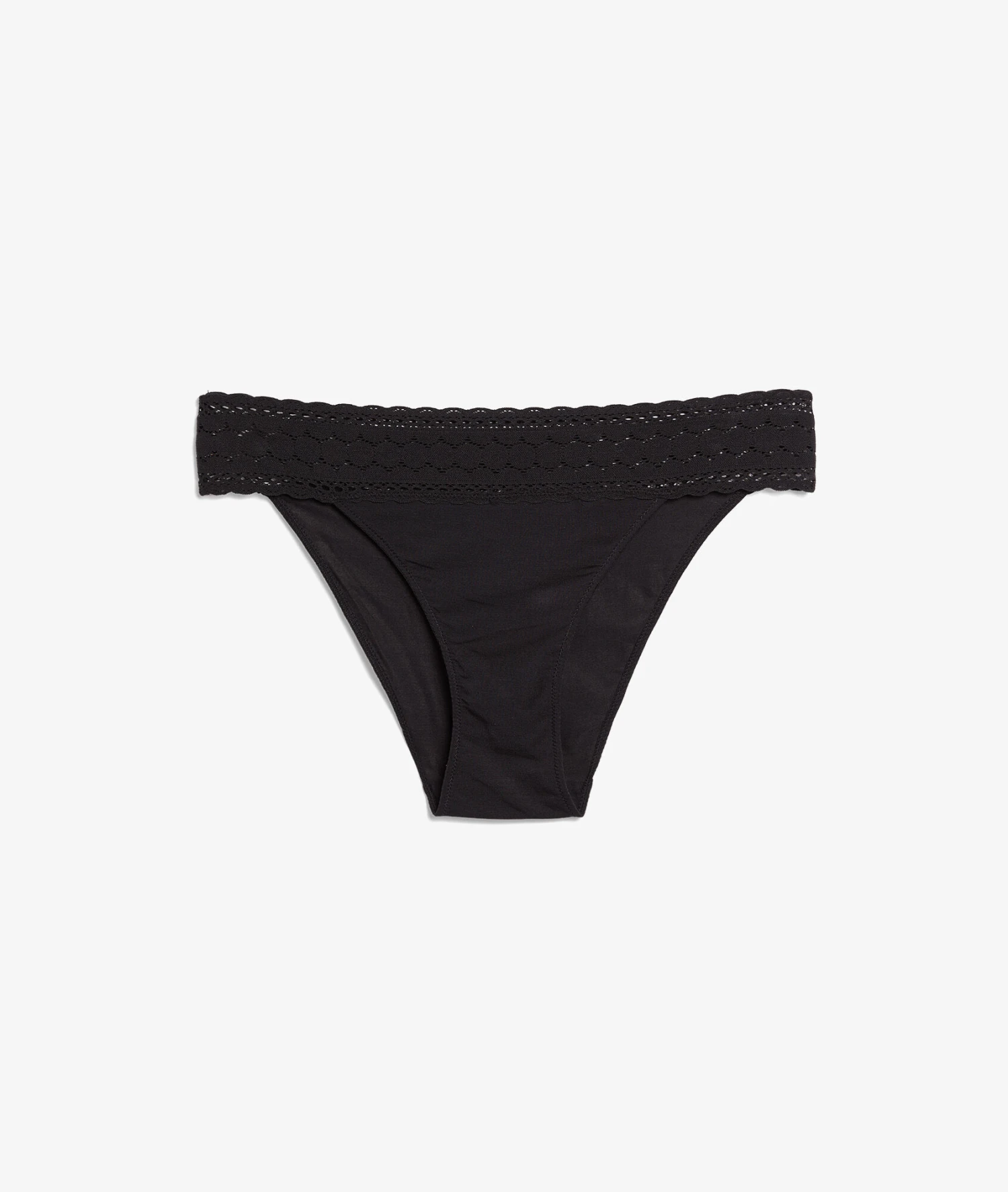 - Filigraner Spitzenbund: Die dezent durchbrochene Spitze an der Taille verleiht dem Slip eine feminine Note, ohne aufzutragen.