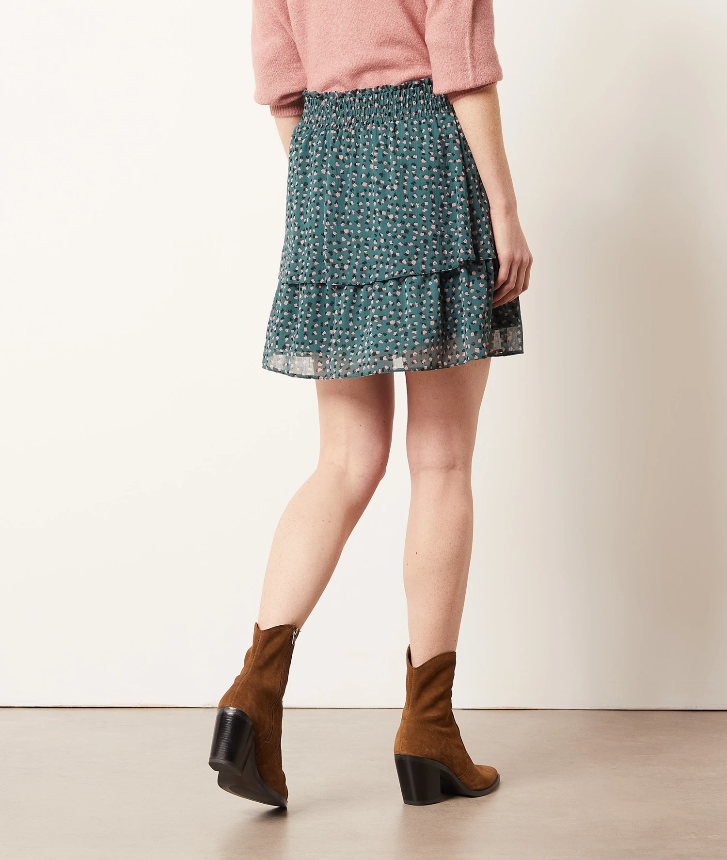 Kurzer, leichter Rock mit floralem Muster und romantischen Akzenten , luftigen Volants und einer gesmokten Taille. Dieser Pullover aus weichem Strick hält Sie warm, bis die schöne Jahreszeit kommt.