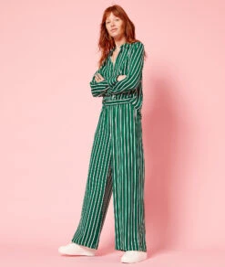 Gestreifte, Fließend Fallende Hose NILGRÜN