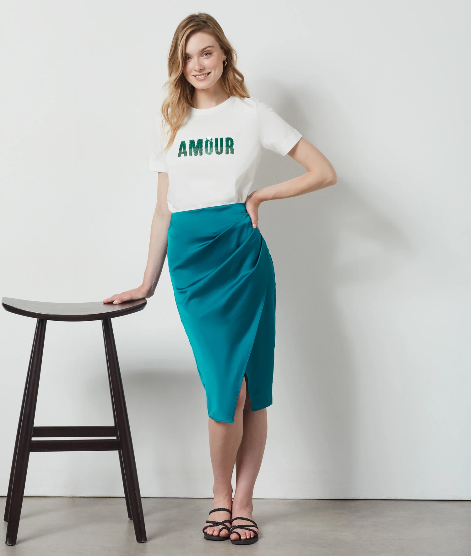 Jupe Midi Satinée EMERAUDE