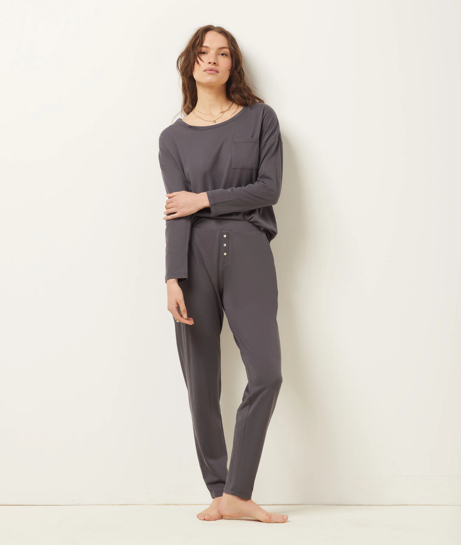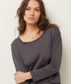 Suchen Sie nach dem perfekten Begleiter für gemütliche Abende und erholsamen Schlaf? Dieses anthrazitfarbene Langarm-Top vereint zeitloses Design mit maximalem Tragekomfort. Dank seiner hochwertigen Verarbeitung ist es die ideale Lösung für alle, die Wert auf weiche Materialien und eine vielseitige Nutzung legen. Ob als klassisches Schlafshirt oder lässig kombiniert zur Jeans in der Übergangszeit – dieses Oberteil garantiert Ihnen ein erstklassiges Tragegefühl.