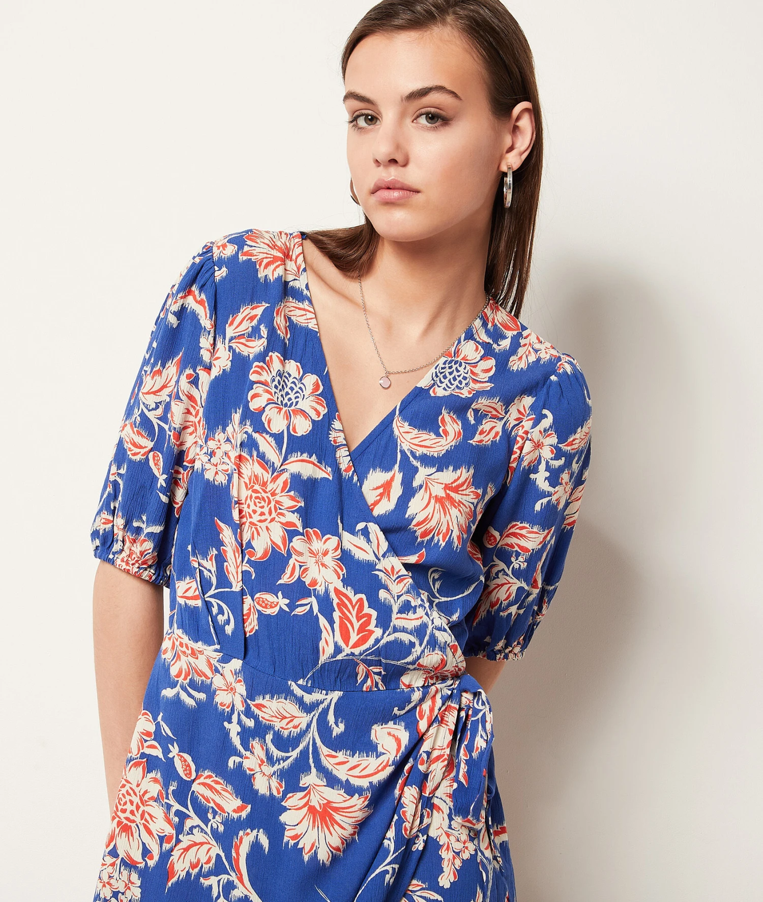 Stilvoll durch den Tag mit dem blauen Print-Kleid