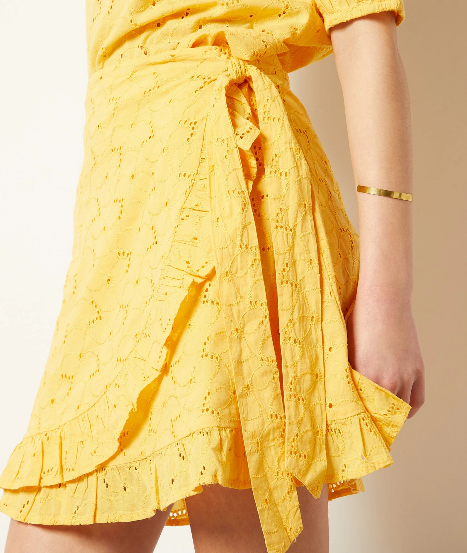 Kurzes Kleid Mit Stickereien SONNENGELB