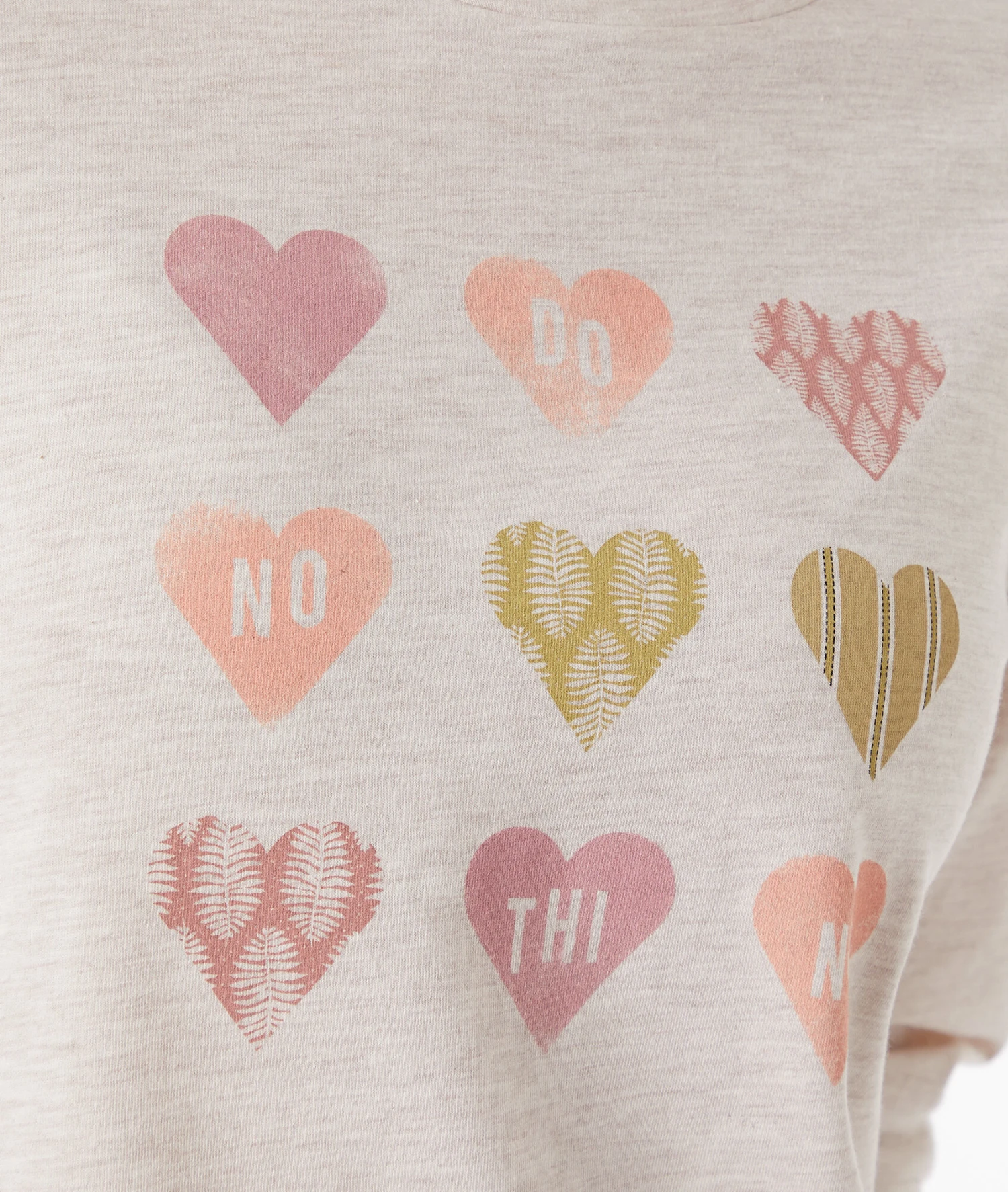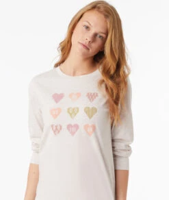 - Design: Beige mit Herz-Print, Rundhalsausschnitt, Langarm
