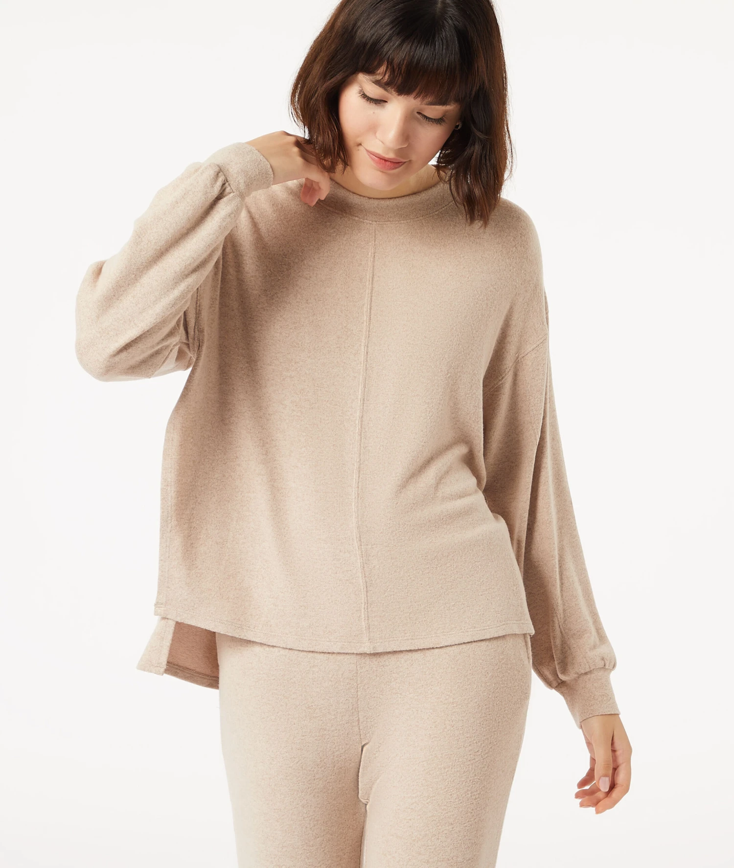Genießen Sie maximale Entspannung mit diesem ultrabequemen Langarm-Oberteil. Ob f“11;r erholsame Nächte oder gemütliche Stunden auf dem Sofa – der lockere Schnitt und das kuschelig angeraute Material machen dieses Sweatshirt zu Ihrem neuen Wohlf“11;hl-Favoriten.