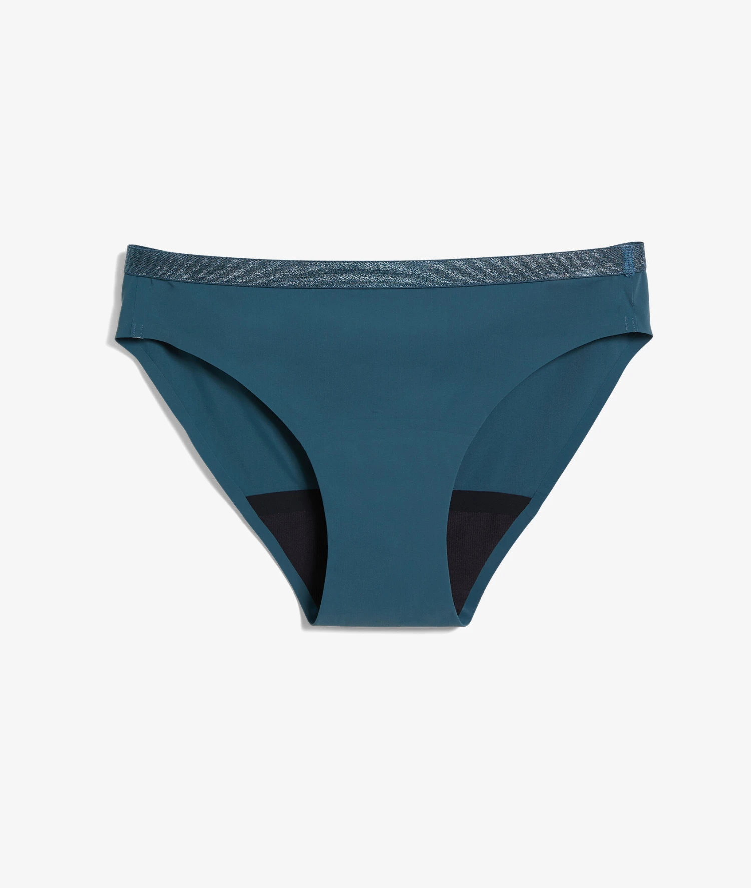 Genießen Sie volle Freiheit und Sicherheit während Ihrer Periode, ohne auf Komfort oder Stil verzichten zu müssen. Unsere Menstruationspanty in elegantem Petrolblau bietet die perfekte nachhaltige Alternative zu Einwegprodukten und begleitet Sie zuverlässig durch mittlere Tage, während sie gleichzeitig aktiv zum Umweltschutz beiträgt.