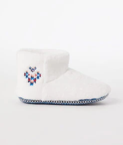 Flauschige Kunstpelz-Hausstiefel in Ecru mit dezenter Stickerei