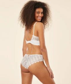 Spitzen-Shorty Damen Ecru – Elegante Panty mit Blatt-Motiv