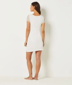 Elegantes Nachthemd mit feiner Spitze & V-Ausschnitt – Ecru