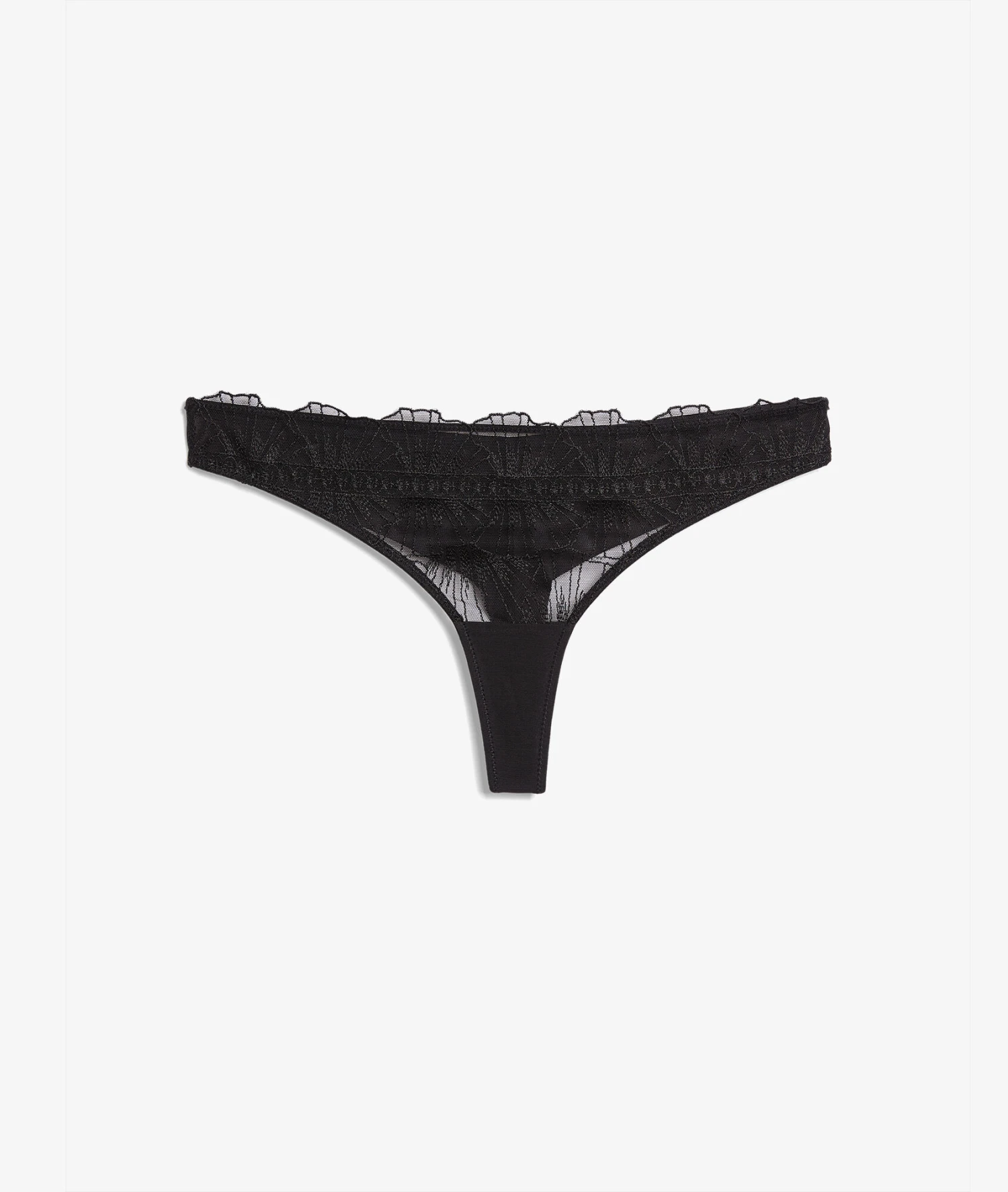 Suchen Sie nach Dessous, die nicht nur verführerisch aussehen, sondern sich auch den ganzen Tag über wie eine zweite Haut anfühlen? Dieser elegante schwarze Tanga löst das Problem von unbequemer Spitze durch die Kombination von zartem, besticktem Mesh auf der Vorderseite und einer ultraweichen Mikrofaser-Rückseite für ultimativen Tragekomfort.