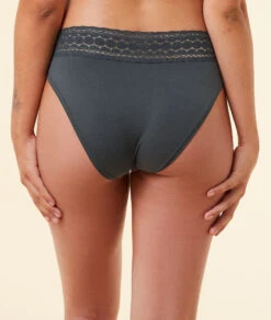 Schwangerschafts-Tanga mit hoher Taille – Spitze & Mikrofaser in Anthrazit