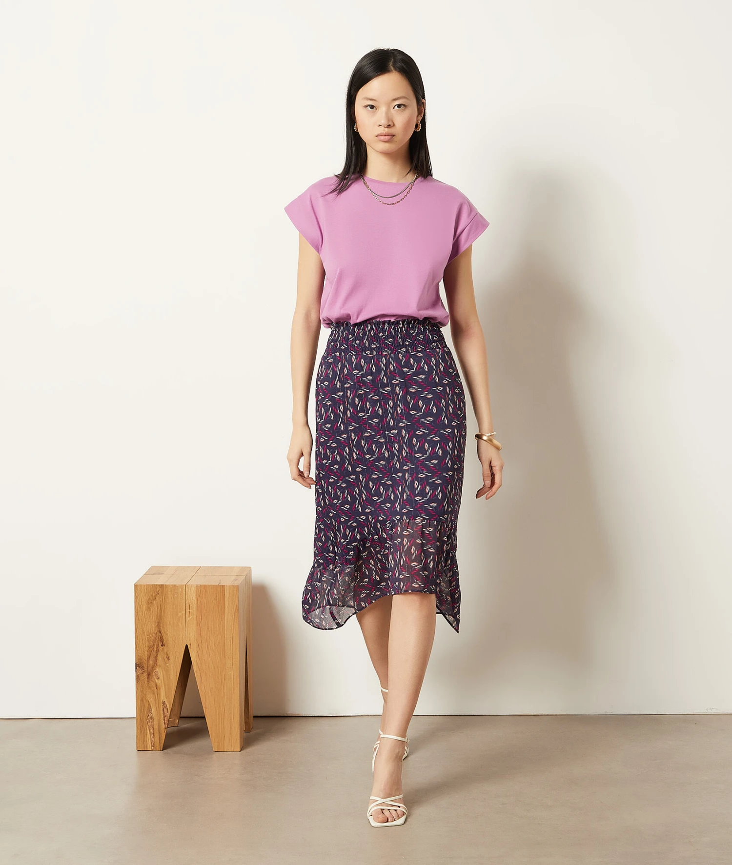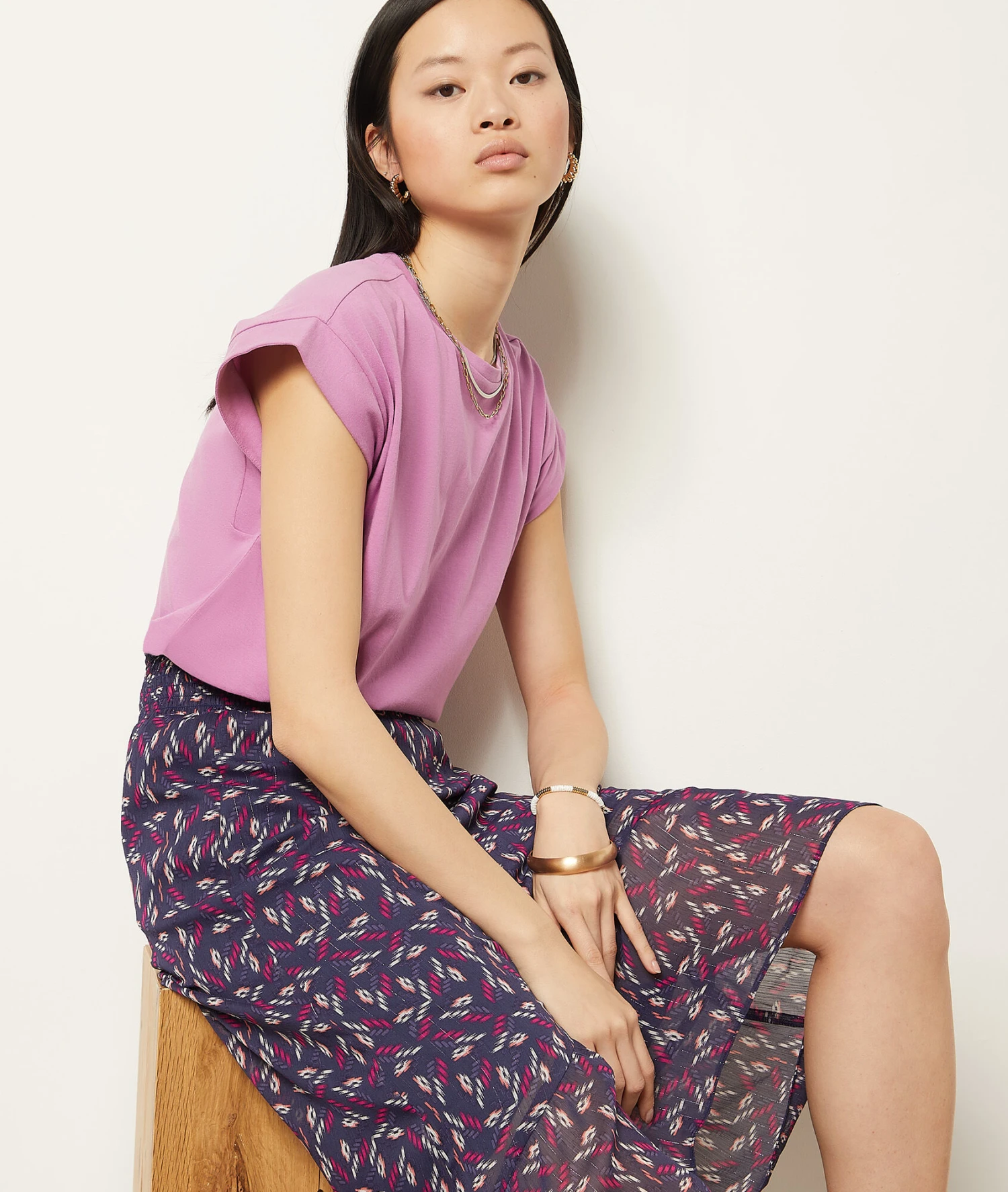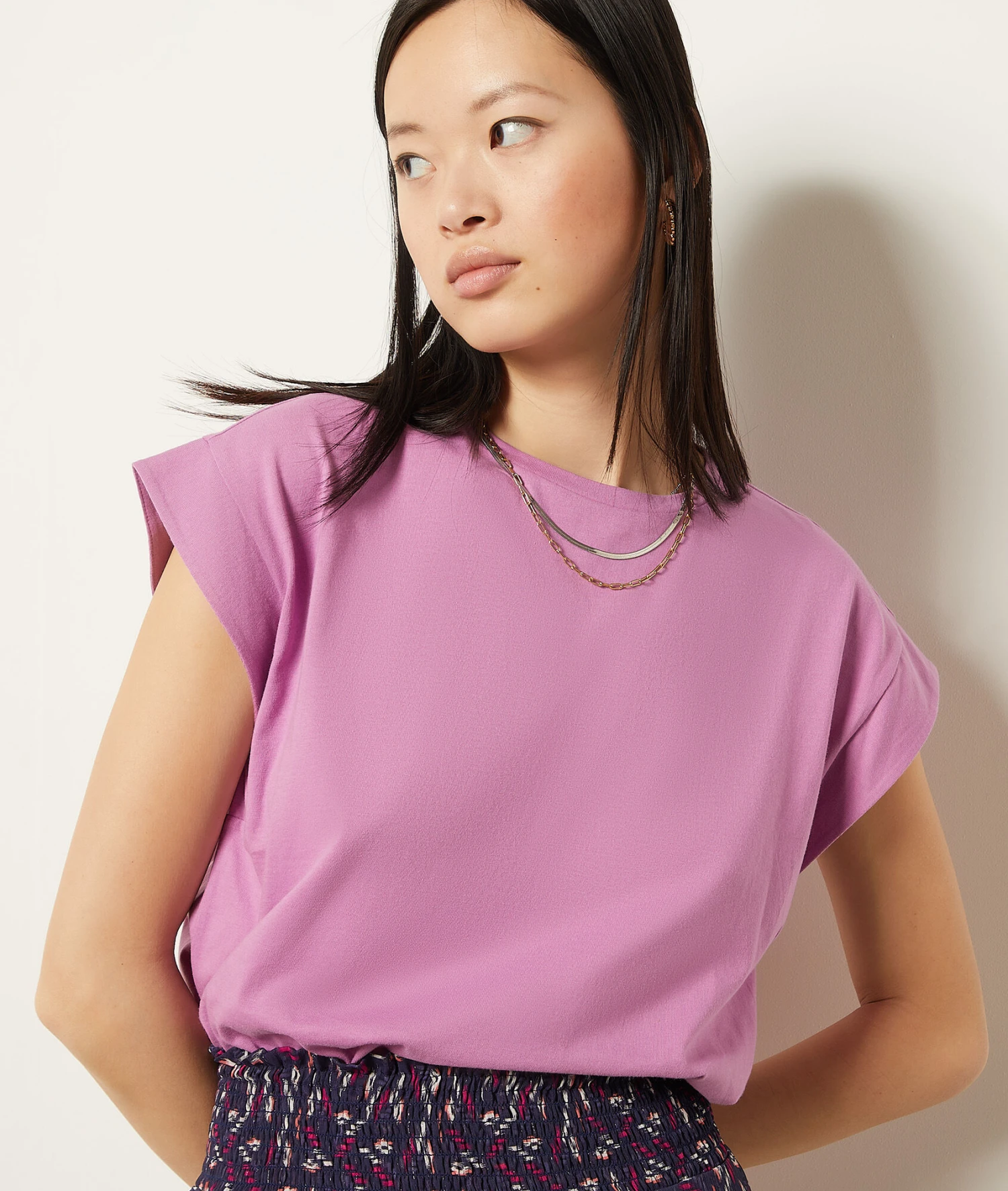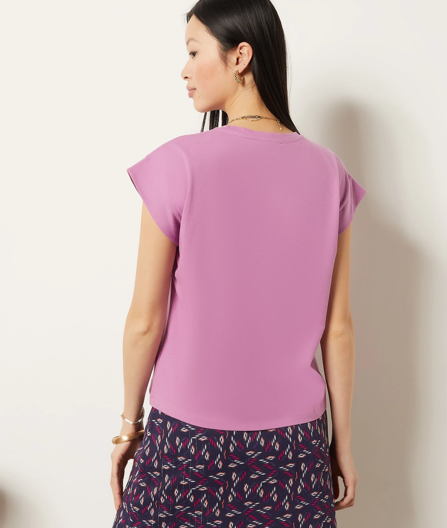T-Shirt Mit Rundem Ausschnitt, 100 % Baumwolle FLIEDER