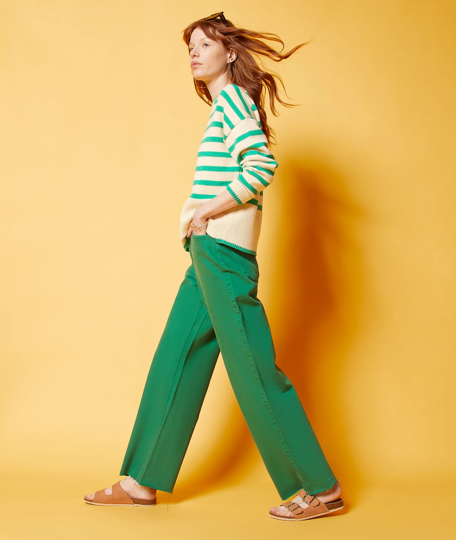 Weit Geschnittene Jeans, 100 % Baumwolle GRÜN